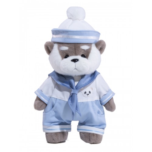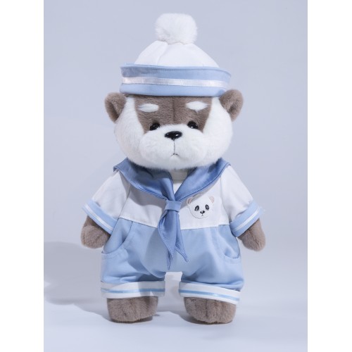 Авторская мягкая игрушка Lina Выдра Оскар серая в костюме размер M (±30 см)