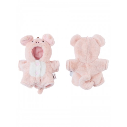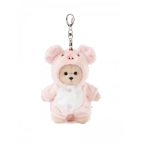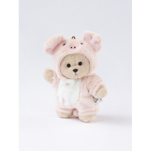 Авторская мягкая игрушка Lina Медведь молочный в костюмчике Хрюшка брелок XS (±15 см)