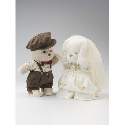 Авторская мягкая игрушка Lina Медведь молочный в Винтажном Костюме Жениха M (±30 см)