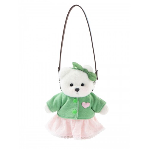 Авторская мягкая игрушка Lina Медведь Счастье белый с зеленым топиком и розовой юбочкой-брелком XS (±15 см)