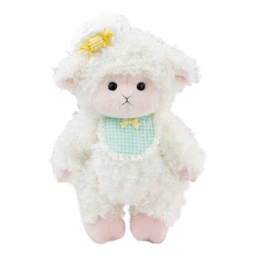 Авторская мягкая игрушка Lina Овечка белая с розовым в костюме размер M (±30 см)