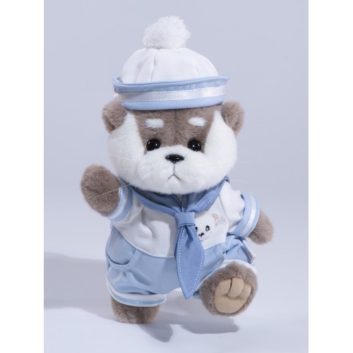 Авторская мягкая игрушка Lina Выдра Оскар серая в костюме размер S (±20 см)