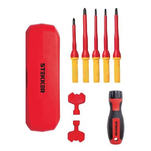 STLS005 Отвертка VDE со сменными битами до 1000В, 8 предметов STEKKER 50409