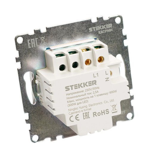 Выключатель 1-клавишный сенсорный (механизм) 250В, 2,5А, серия Катрин, белый STEKKER 50274